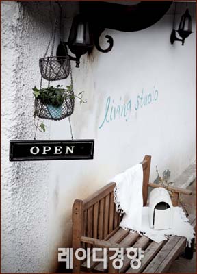 집 안으로 들어가는 입구 한쪽 벽면에 나무 벤치를 놓아 휴식 공간을 마련한다. 낡은 질감이 오히려 멋스러운 나무 벤치에 무릎 담요를 늘어뜨리고 빈티지풍 우편 박스를 놓으면 내추럴한 분위기가 연출된다. 벽면이 밋밋할 땐 페인트를 이용해 그림을 그리거나 글씨를 새기고 행잉 바스켓이나 사인보드를 달아 포인트를 준다.