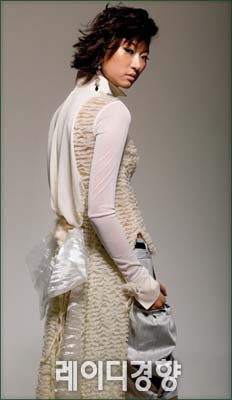 볼륨감을 살린 버뮤다 팬츠에 연미복 스타일로 꼬리를 길게 늘어뜨린 롱 블라우스를 받쳐 입어 드레시한 분위기를 연출했다. 롱 블라우스의 풍성한 프릴과 리본 장식은 드라마틱한 분위기를 살리는 요소. 롱 블라우스·버뮤다 팬츠 가격미정, 양성숙. 귀고리 2만5천원, 도니아.