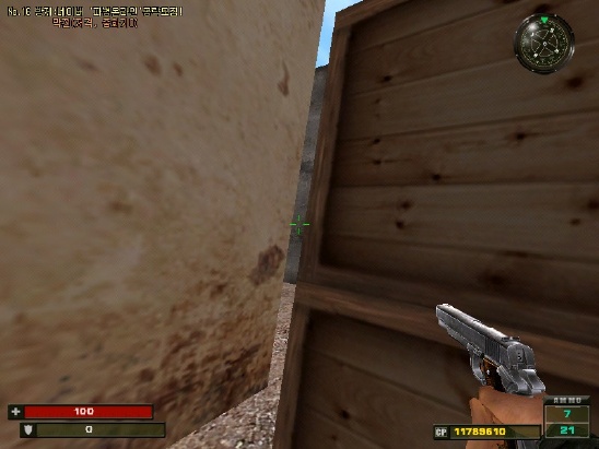 움푹파인곳에서 앞으로 나가다보면 나무상자가 있는데 거길 디딛고 올라가면 중앙이 보인답니다.( 단점은 이곳에서 헤샷을 잘맞는 다는 점이죠)