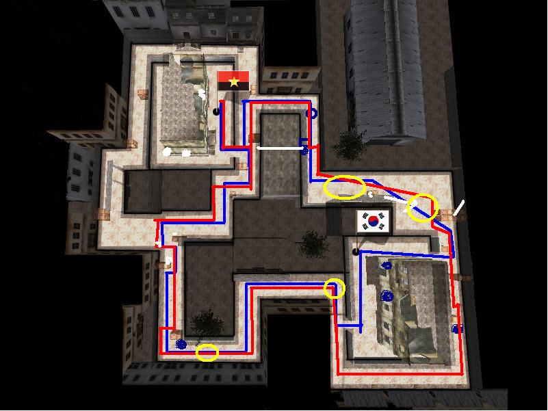 먼저 벌어집니다 그후 노란색 지점에서 교전이 벌어지구요 콩은 자리를 잡고 쏘려하죠