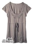 깊은 라운드, 네크라인 장식 전체적으로 시원해 보인다. 네크라인의 장식이 시선을 모아주므로 팔뚝은 상대적으로 가늘어 보인다.