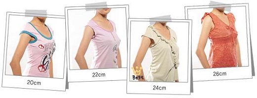 너무 딱 달라붙고 팔이 움직일 틈이 없는 진동둘레는 그만큼 어깨며 팔뚝을 부각시킨다. 진동둘레가 적당히 넓어야 그 안의 팔뚝이 슬림해 보인다. 단, 움직일 때 드러나는 팔뚝살도 꼭 참고해야 한다.