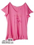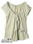 짧은 러플 디테일 소녀풍 디자인으로 팔뚝이 노출되는 부위가 넓지만 러플이 팔뚝을 가늘어 보이게 한다.
