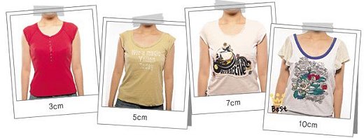 캡소매는 팔뚝이 두꺼워 보이는 디자인이 대부분. 팔뚝이 드러나면 드러날수록 두꺼워 보이는 것은 당연한 이치. 어중간하게 팔뚝 중간에서 끝나는 것이 아니라 아예 두꺼운 부분을 드러내지 않는 것이 최선.