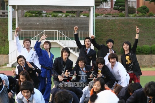 슈퍼주니어가 자신들이 주연한 영화 '꽃미남 연쇄테러사건'의 개봉에 맞춰 모든 상영관에서 무대인사를 한다.김희철, 이특, 김기범, 최시원, 강인 등 슈퍼주니어 멤버들은 오는 26일 영화 '꽃미남 테러사건'(이하 '꽃미남') 개봉과 함께 전국의 모든 상영관을 찾아가 관객을 만나기로 했다.'꽃미남'의 한 관계자는 17일 "교통사고를 당해 치료 중인 규현을 뺀 12명의 슈퍼주니어 멤버 모두가 개봉일인 26일부터 오는 8월5일까지 서울을 시작으로 매일 전국의 극장을 돌며 상영 무대인사를 할 계획이다"고 밝혔다.슈퍼주니어 멤버들은 한 개 상영관에서 영화 상영 앞뒤로 절반씩 인원을 나눠 관객을 만날 예정이다. 최소 9~10명이라도 매일 극장을 찾겠다는 의지를 드러내고 있다.이에 따라 이들은 적어도 하루 10개관 이상의 상영관을 찾아갈 것으로 보인다.영화 개봉에 맞춰 출연진이 이처럼 매일 상영관을 찾기는 매우 이례적인 일로 꼽힌다.이 관계자는 "이들이 자신들의 첫 영화가 개봉해 관객을 만난다는 것에 무척 설레고 있다"면서 "관객들에게 최선을 다하는 모습을 보여주기 위해 이 같이 결정했다"고 배경을 설명했다.영화 '꽃미남 연쇄테러사건'은 발렌타인데이인 2월14일 고교 '꽃미남'이 의문의 테러를 당한 뒤 한 달 뒤 또 다시 다른 학교 '꽃미남'이 테러의 피해자가 되면서 벌어지는 해프닝을 그리는 이야기다. 기사&사진출처 (마이데일리)