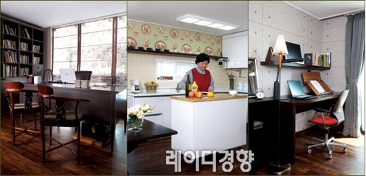 집을 고치면서 가장 먼저 결정한 것은 안방을 서재로 꾸미는 것. 대학 교수인 남편을 위해 가장 큰 방을 서재로 만들고 안방 바로 옆방을 부부 침실로 소박 하게 꾸몄다. 이번 기회에 책상과 책꽂이를 새롭게 맞춤 제작했는데, 그레이 컬러로 페인팅한 가구가 고급스러우면서도 독특해서 남편이 무척 좋아한다고.