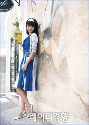 (woman) 비비드 블루 컬러 프릴 원피스. 여기에 햇빛을 받으면 더욱 반짝거리는 나비 모티브의 펜던트 목걸이와 같은 디자인의 나비 모티브 귀고리로 포인트를 주어 사랑스러운 분위기를 연출했다. 원피스 15만8천원, 헤이린. 목걸이 9만2천원·귀고리 4만2천원, 나비야.