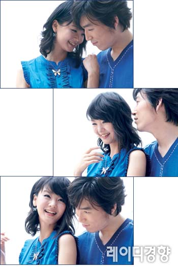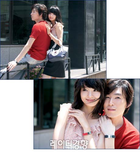 (woman) 상의는 시스루 소재 프릴 톱으로, 하의는 심플한 블랙 컬러의 슬릿 스커트로 패치워크된 로맨틱 원피스는 사랑스런 느낌을 주는 서머 아이템. 손목의 레드 컬러 밴디드 커플 팔찌가 멋스럽다. 원피스 40만원대, 블루시안. 레드 커플 팔찌 6만8천원, 바이콕스.