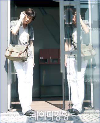 (man) 그레이와 실버가 믹스된 핀턱 셔츠는 하나만으로도 지적인 느낌을 줄 수 있는 멋스런 아이템. 하의는 심플한 화이트 컬러의 슬림 팬츠가 제격이다. 셔츠 10만8천원, 지크. 팬츠 10만원대, 레노마 옴므. 로퍼 20만원대, 소다. 숄더백 10만원대, 악세서라이즈.