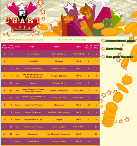 원더걸스가 태국에서 인기몰이에 성공하고 있다.지난 6월 태국에서 데뷔 싱글 ‘The Wonder Begins’를 발표한 원더걸스의 데뷔 곡 ‘Irony’가 MTV 태국 인터내셔널 차트에서 5위에 랭크됐다.MTV 태국 인터내셔널 차트는 MTV에서 한주간 방송횟수 및 시청자 리퀘스트를 합산해 매주 발표하는 주간 음악차트로 이번 주에 발표된 차트(7월 21일~27일)에서 원더걸스는 저스틴 팀버레이크(Justin Timberlake), 마룬 파이브(Maroon 5) 등 세계적인 아티스트들을 제치고 당당히 5위에 올랐다.뿐만 아니라 7월 MTV ‘이달의 아티스트(MTV HOT)’에 선정되는 등 태국을 중심으로 아시아 각국에서 뜨거운 관심과 사랑을 받고 있다.2007년 데뷔와 동시에 상반기 내내 활발한 활동을 펼쳤던 원더걸스는 지난 4월 중국 베이징에서의 단독 쇼케이스를 시작으로 지난 6월 초 태국에서도 앨범을 발매했다.‘Irony’외의 또 다른 수록곡인 ‘미안한 마음 (It’s not love)’의 반응도 좋아 한국에서 공개되지 않았던 활동 모습을 담은 뮤직비디오도 현지에서 공개할 계획이다. 기사&사진출처 (스타뉴스)