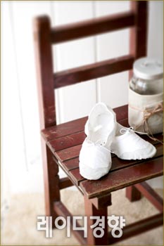 발레 슈즈 스타일의 화이트 리넨 실내화. 본래의 용도 외에 테이블이나 콘솔 위에 놓아 장식 소품으로도 활용하기 좋다. 화이트 슈즈 4천9백원, 브라운 빈티지 의자 3만9천원, Maket m. 나머지는 스타일리스트 소품.
