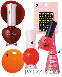 레드 컬러는 골드 샌들에, 핫 핑크 컬러는 실버 스트랩에 최적. 다홍빛이 섞일수록 시원해 보이고, 펄이 없는 단정한 컬러가 발이 깔끔해 보인다. 붉은 계열 의 매니큐어는 착색되기 쉬우므로 반드시 베이스 코트까지 구입하자.