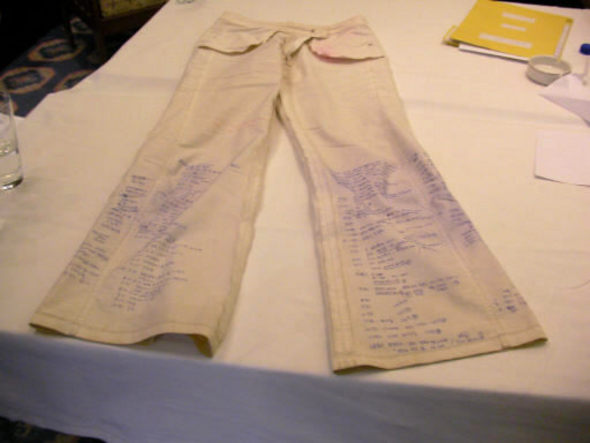 바지에는 허벅지?? 무릎?? 부터 써내려져갔군요....
