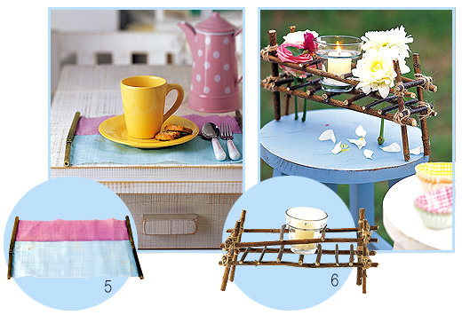 ▶ 가는 나뭇가지로 만든 센터피스에 담긴 초가 은은한 불빛으로 분위기 있는 공간을 연출한다. 작은 스툴 위에 올려 꽃과 매 치하면 더 낭만적이다.