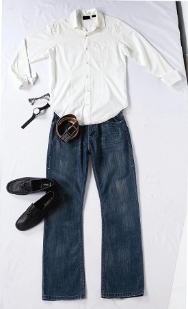 화이트 컬러의 셔츠에 살짝 워싱이 가미된 데님 팬츠를 입어라. 심플해 보이면서도 매력적으로 보일 수 있으니까. 거기에 엘리트처럼 보이기 위해 반무테 안경을 착용하고, 블랙 러버 밴드 시계에 캐주얼한 벨트와 블랙 로퍼로 마무리하면 Perfect! 알랭미끌리 안경40만원대,타이맥스 시계 14만5천원,소다 구두 19만3천원