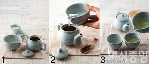 녹차 음료가 앞다투어 출시되고 있는 요즘. 다기 세트를 갖춰 놓고 차를 우려 내 마시면 좋겠지만, 번거롭다면 1인용 다기를 이용해 보자. 다기에 더운 물을 부어 데운 다음, 물을 따라 내고 거름망에 녹차를 넣는다. 65~80℃ 정도로 식힌 더운물을 다시 넣고 뚜껑을 덮어 우려낸 다음 마시면 된다.