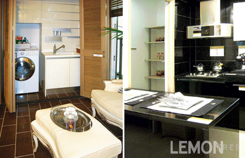 Review 기존 아파트의 정형화된 사각형 구조만 봐왔던 터라 주상복합형의 구조가 신선했다. 공용 공간은 오픈형, 개인 공간은 콘셉트를 달리해 취향을 고려해 꾸민 점이 눈에 띈다. 확장의 경우만 포함되지만 대리석을 마감재로 사용해 고급스러운 분위기를 냈고, 휴대전화로 실내 온도와 가전제품을 조절할 수 있는 유비쿼터스 신기능이 접목되어 생활의 편리를 더했다. 확장했을 때와 확장하지 않았을 때의 면적 차이와 비용 폭이 크다.