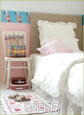 화이트 침구가 썰렁해 보인다면 체크무늬 베개나 쿠션으로 포인트를 주는 것도 좋은 방법. 캐주얼한 체크무늬는 아이 방에 특히 잘 어울린다.