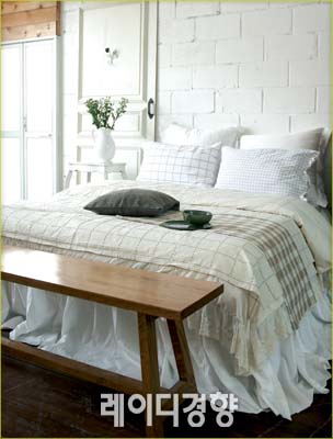 은은한 브라운 컬러 체크무늬 베드 스프레드는 침실에 따뜻한 기운을 불어넣기에 충분한 아이템. 침구 전체를 바꾸는 것이 부담스럽다면 가을빛 베드 스프레드로 분위기를 더해보자.