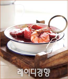 4 ②의 자두와 와인시럽을 볼에 담아 식힌 뒤 ③의 대하와 함께 냉장실에 넣어 차게 해서 낸다.