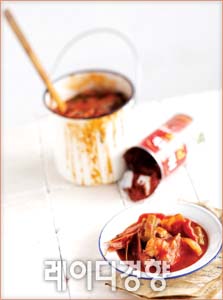 5 ④에 ③과 화이트와인을 넣어 볶은 뒤 타이 고춧가루를 넣어 좀 더 볶는다.