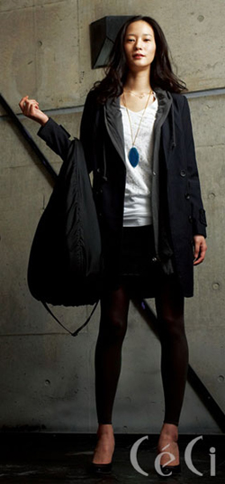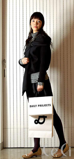 “저에게 재킷은 ‘스틸레토 힐’과 같아요. 걸치는 순간 머리에서 발끝까지 드레스 업되는 짜릿한 기분, 여성이라면 누구나 공감하지 않을까요? 너무 포멀한 것보다는 심플하면서도 유니크한 절개가 들어간 에지 있는 디자인을 좋아해요. 키가 작은 편이라 쇼트 재킷을 즐겨 입죠.” Perfume PR Model 김유진