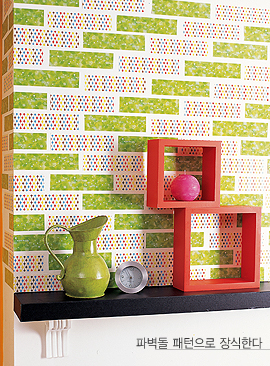 페치카 위로 휑하게 비워져 있는 벽을 장식하고 싶다면 디자인 테이프로 만든 파벽돌은 어떨까. 풀칠할 필요 없이 손쉽게 붙일 수 있어 부담스럽지 않다. 파벽돌 크기로 여러 장 잘라 일정한 간격으로 붙이면 금세 파벽돌이 붙어 있는 듯한 벽으로 변신한다. 알록달록한 테이프 덕분에 깔끔하면서도 생동감 있는 공간이 되었다.