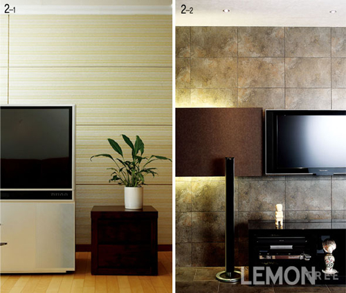 1년여 전부터 아파트 모델하우스에 가죽 소재의 수납장이 속속 등장했다. 인조 가죽 원단은 가공 처리가 되어 있지 않기 때문에 시공하면서 늘어나거나 밀릴 수 있지만 가죽 필름지는 마감이 깔끔하다. 필름으로 래핑하면 하이글로시나 도장으로는 낼 수 없는 다양한 질감을 믹스해 인테리어할 수 있고, 색상 변화나 오염이 덜하므로 신발장이나 코너 수납장처럼 손을 많이 타는 곳에 응용하면 좋다.