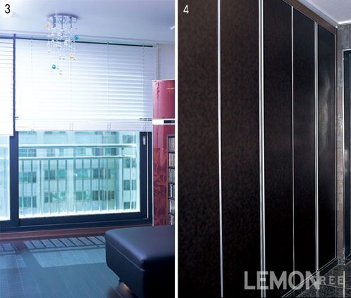 가는 선일 뿐이지만 새시 프레임의 컬러가 집 안 인테리어에 미치는 영향은 생각보다 크다. 특히 메이플이나 체리 컬러의 창호라면 월너트, 웬지 등의 바닥재를 선호하는 요즘 트렌드와는 어울리지 않는다. 창호를 래핑할 때는 블랙이나 화이트의 베이스 컬러를 선택해야 살면서 도배를 다시 하거나 가구 컬러를 바꾸더라도 무리 없이 어울린다. 매끈한 질감보다는 나뭇결 디테일이 있는 제품이 시공했을 때 고급스럽다. 새시를 래핑하려면 전문 시공업자를 불러 실리콘을 떼어내고 래핑한 후 다시 실리콘을 쏴야 유리와 맞닿은 부분까지 감싸져 깔끔하다.