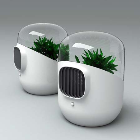 ‘벨-에어(Bel-Air)’ 공기 청정기는 공기 정화에 식물을 사용한다.