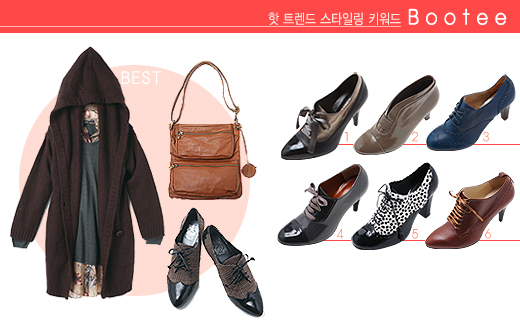①그레이 에나멜 부티 가격 미정 LnA ②밴드 장식 부티 25만9천원 베네통 ③블루 부티 10만9천원 even BETTER ④네이비 부티 24만8천원 지클로제 ⑤호피 송치 부티 12만2천원 W shoes ⑥브라운 부티 26만8천원 지클로제