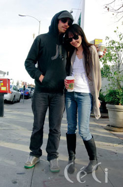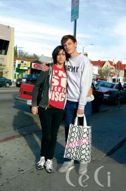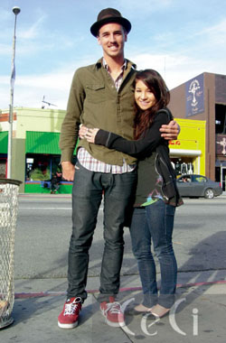 50cm가 넘는 키 차이에도 불구하고 서로에게서 떨어질 줄 모르는 닭살 커플. 지난해 핼러윈 파티에서 첫눈에 반한 뒤 3개월째 만나고 있다. 트래비스의 스키니 진은 50달러로 리바이스, LA 스트리트 핫 아이템인 페도라는 20달러로 로드숍에서 구입. 마리아가 입은 스키니 진은 20달러로 빈티지 숍에서 구입, 플랫슈즈는 10달러로 포에버 21 제품.