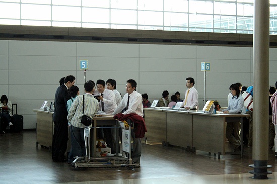L과 M사이 5번 테이블에는 항시 하나투어 공항 사무소 직원분들이 24시간 대기중이다.