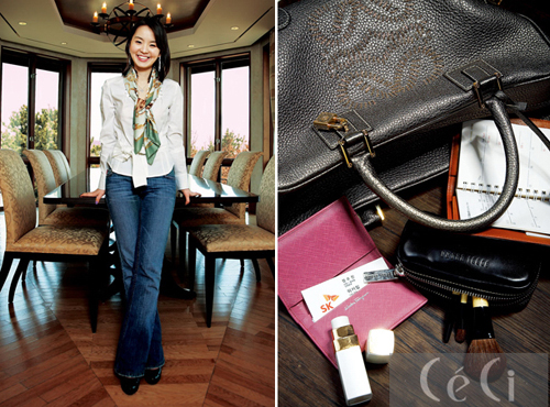 클래식한 정장 스타일에 어울리는 튀지 않는 컬러의 가죽 백을 선호한다. 늘 휴대하는 다이어리, 메이크업 수정 파우치, 명함 케이스 그리고 향수.