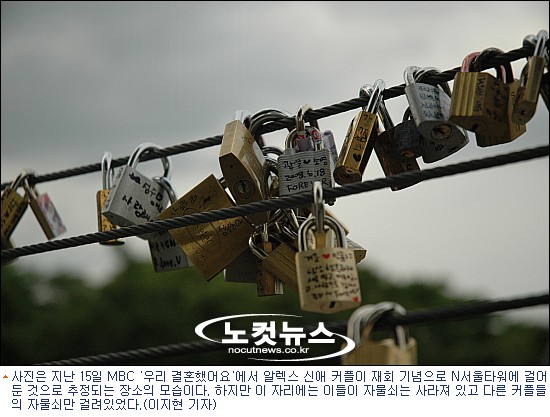 하지만 25일 노컷뉴스가 확인한 결과 알렉스와 신애가 걸어둔 사랑의 자물쇠는 찾을 수 없었다.