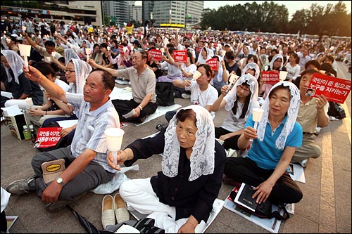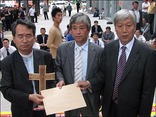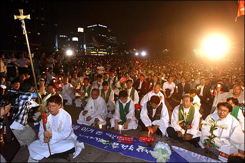 이에 앞서 목사들은 광화문 세종문화회관 계단에서 기자회견을 열고 이명박 대통령의 회개와 폭력진압 책임자 처벌 등을 요구했다.