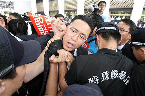 몸싸움은 10여 분간 계속됐다. 목사는 "차라리 우리를 때려라" "목사들은 맞을 준비가 되어 있다"고 목소리를 높였다. 결국 목사들은 뿔뿔이 흩어져 정부종합청사 뒤편에 다시 모였고, 경복궁 역쪽에서 다시 전경에 막혀 있다.