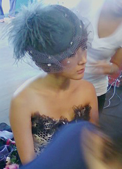 서인영은 7일 자신의 미니홈피에 어깨를 드러낸 매력적인 블루톤의 레이스 웨딩드레스를 입은 사진을 올린 것.