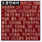 정제가공유지 빵의 겉을 둘러싸고 있는 초콜릿은 사실 진짜 초콜릿이 아니고 화학처리를 한 고체기름, ‘정제가공유지’다. 백설탕 쿠키와 파이류에 두 번째로 많이 들어가 있는 것이 바로 설탕이다. 설탕은 몸속에 들어가면 미네랄과 비타민 C를 파괴하고 과량 섭취하면 성격장애를 일으킨다. 30g의 파이 한 개에는 10g의 설탕이 들어 있다. 쇼트닝 파이를 폭신폭신하게 가공하기 위해서는 쇼트닝이 필요하다. 쇼트닝은 바로 트랜스지방이다.