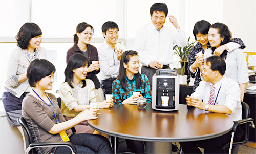커피를 마시기 위해 사람들이 몰려들어서, 자신이
