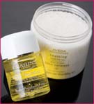 (왼쪽)컨투어링 트리트먼트. 천연식물 성분이 혈액순환을 도와 몸의 붓기를 제거해주는 보디 오일. 클라란스. (오른쪽)수딩 아쿠아떼라피. 긴장과 스트레스를 없애주는 목욕용 사해 소금. 아베다.