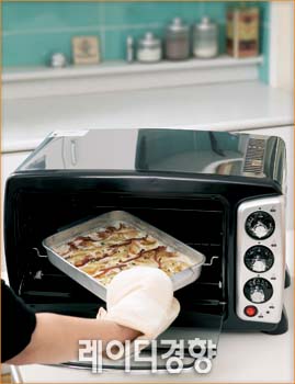 토스터 정도의 콤팩트한 사이즈로 부엌 공간이 좁은 싱글이나 신혼부부에게 유용한 제품. 작아도 컨벡션 기능을 갖추고 있어 활용도가 높다. 부스러기 받침대가 있어 청소하기도 편리하다. 12만8천원, 드롱기.