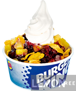 토핑 스트로베리, 라즈베리, 블루베리, 팥빙수용 팥, 프루츠 칵테일, 빙수용 떡, 젤리, 시리얼, 아이스크림. 3가지의 베리가 믹스되어 전체적으로 새콤달콤하고 이국적인 맛. 일반적으로 패스트푸드점에서 접하기 어려운 이색 메뉴이므로 한 가지 맛에 싫증을 느꼈다면 먹어볼 만하다. 아이스크림이 달지 않아 베리믹스와 궁합이 잘 맞는 듯.