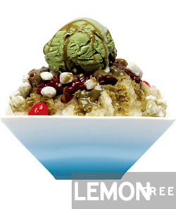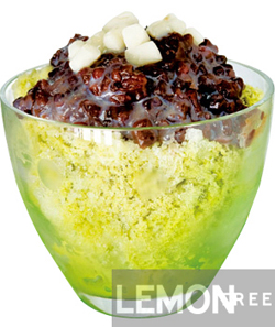 토핑 녹차 가루, 녹차 시럽, 녹차아이스크림, 팥빙수용 팥, 빙수용 떡, 체리, 연유 시럽, 우유. 팥빙수용 팥은 다른 곳보다 많이 달지만, 대신 녹차아이스크림이 달지 dksg고 녹차 맛과 향은 은은해서 녹차 디저트를 즐기지 dksg는 이들도 부담 없이 시도해볼 만한 빙수. 일본산 녹차 가루를 사용한다. 일반 팥빙수는 원하는 아이스크림을 토핑으로 얹어주는 것이 특징.