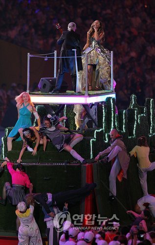 연주 도중 두드왈라양과 함께 영국의 축구스타 데이비드 베컴(33)이 이층버스 위에 올랐으며 공연이 끝나자 베컴은 이층버스 무대 위에서 선수단을 향해 축구공을 찼다.