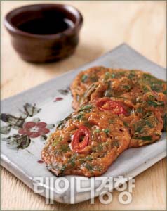 1 부추는 1cm 길이로 잘게 썰고 홍고추는 어슷하게 썬 뒤 씨를 털어낸다. 청양고추는 잘게 다진다. 2 물에 강된장을 넣어 곱게 푼다. 3 밀가루를 체에 내려 볼에 담고 ②를 넣어 고루 반죽한 뒤 부추, 홍고추, 청양고추를 넣어 고루 섞는다. 4 달군 팬에 식용유를 두르고 반죽을 한 국자씩 떠 올린 뒤 앞뒤로 노릇하게 지져 낸다.