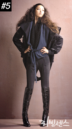 이번 시즌에 간과해서는 안 될 트렌드인 시티 라이더 룩. 베이식한 니트 카디건과 시크한 울 재킷, 라이더 팬츠의 매치가 도시적인 느낌을 부각시킨다.
