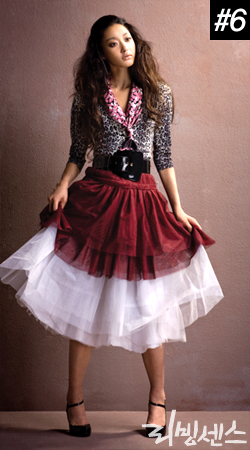 가장 기본적인 브이넥 니트 카디건. 이번 시즌에는 솔리드 컬러보다 패턴이 화려한 니트 카디건을 선택할 것. 여기에 볼륨이 풍성한 풀 스커트를 매치해 로맨틱한 느낌을 강조한다.▶ 레오파드 프린트의 니트 카디건, 막스앤스펜서. 핑크 컬러의 하트 프린트 스카프, 루이까또즈. 와인 컬러 티어드 스커트, 질 바이 질 스튜어트. 블랙 에나멜 소재의 메리제인 슈즈 , 잇츠 유. 블랙 에나멜 와이드 벨트, 스타일리스트 소장품.