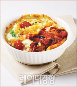 1 끓는 물에 올리브유와 소금, 펜네를 넣고 15분간 삶은 뒤 체에 밭친다. 2 마늘과 양파는 잘게 다지고 양송이버섯은 편으로 얇게 썬다. 3 팬에 포도씨유를 두르고 마늘과 양파를 볶다가 향이 오르면 양송이버섯을 넣어 볶는다. 4 ③에 토마토홀과 토마토케첩, 월계수 잎을 넣어 한소끔 끓인 뒤 소금, 설탕, 후춧가루로 간을 맞춰 소스를 만든다. 5 그라탱 그릇에 삶은 펜네를 담고 ④를 고루 끼얹은 뒤 모차렐라치즈와 파슬리가루를 뿌린다. 6 180℃로 예열한 오븐에 ⑤를 넣어 치즈가 노릇해질 때까지 20분간 굽는다.