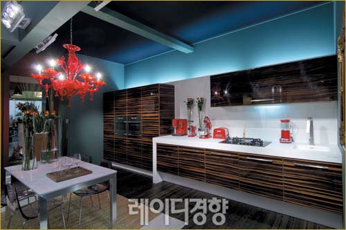인테리어, 패션 등 라이프스타일 전반을 주도한 '믹스 & 매치' 트렌드도 주방 공간에 영향을 끼친다. 친환경 최고급 자재에 유리 거울, 스테인리스, 홀로그램 도장, 손으로 직접 조각한 듯한 엠보 우드 등 다양한 소재들과 결합을 통해 고급스러움을 더욱 강화했다. 기본에 충실한 컬러와 현대적 라인은 집 안 전체에 멋스러움을 더한다.